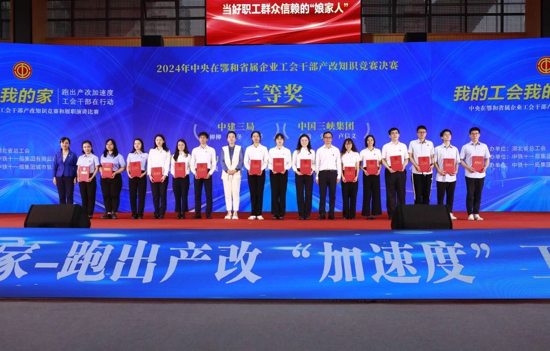 本網訊(李響)近日,由湖北省總工會主辦的2024年中央在鄂和省屬企業工會干部產改知識競賽和履職演講比賽決賽在漢圓滿落幕,湖北能源工會主席李春華出席決賽閉幕式。由湖北能源李響、盧信義、張宇3名職工組成的三峽集團代表隊榮獲“產改知識競賽我知道”知識競賽三等獎。